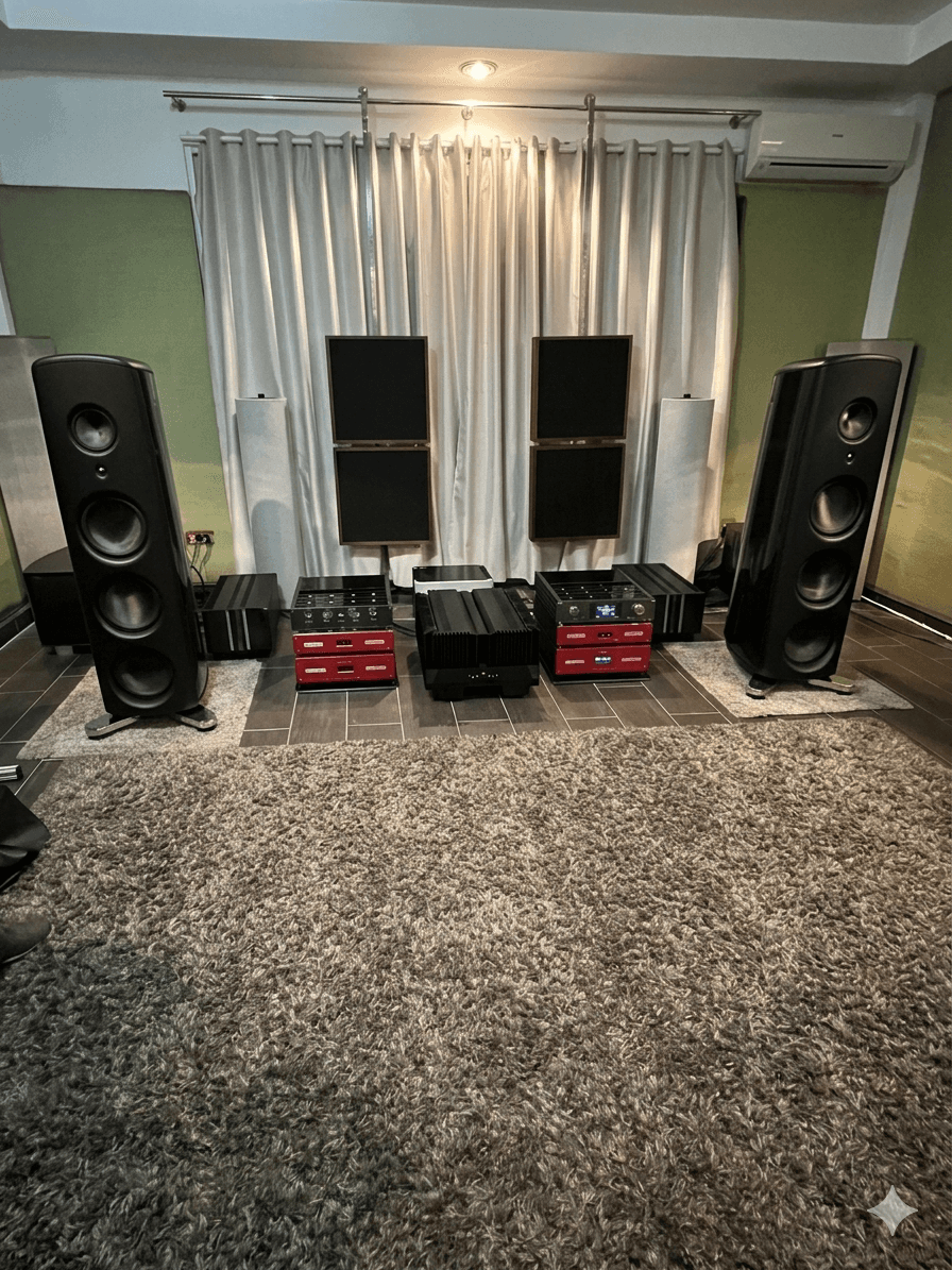 Proyecto enfocado en lograr máxima fidelidad sonora mediante una cuidadosa selección de componentes y tratamiento acústico del espacio.