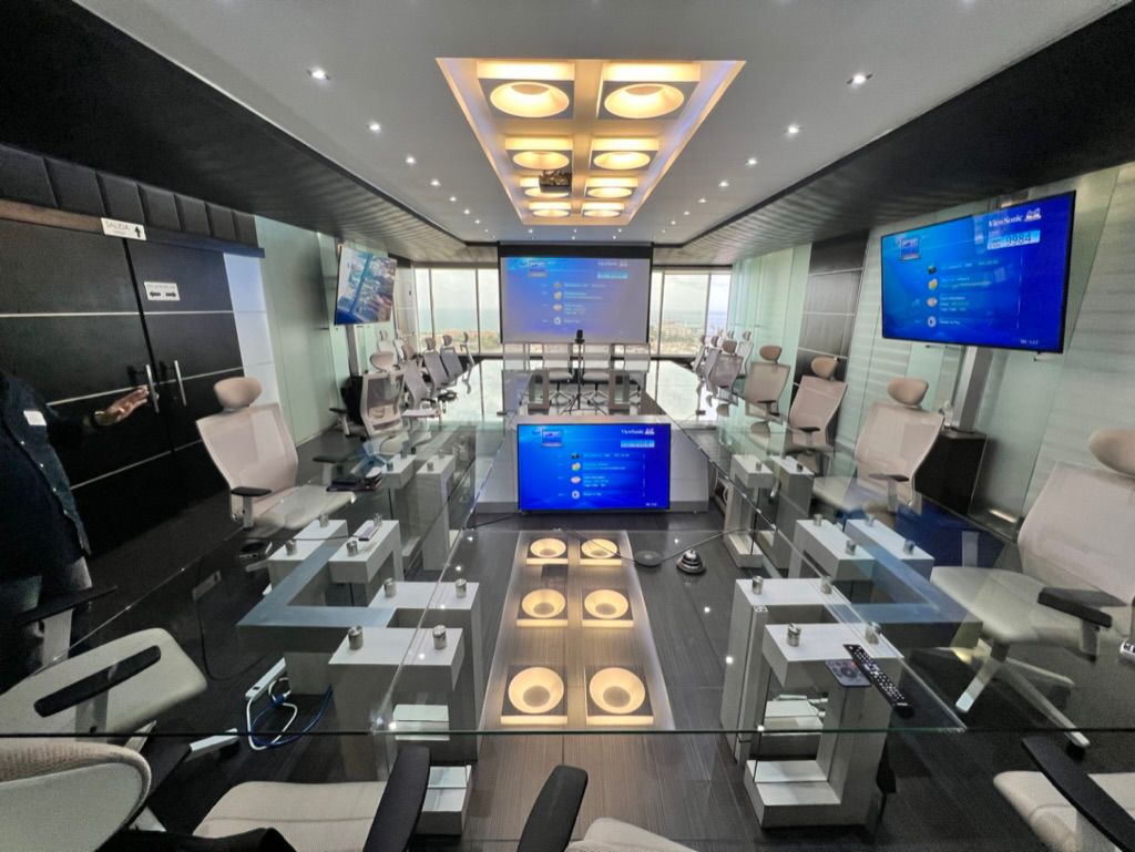 La incorporación de pantallas adicionales garantiza una visualización clara para todos los participantes, logrando una comunicación fluida, precisa y profesional.